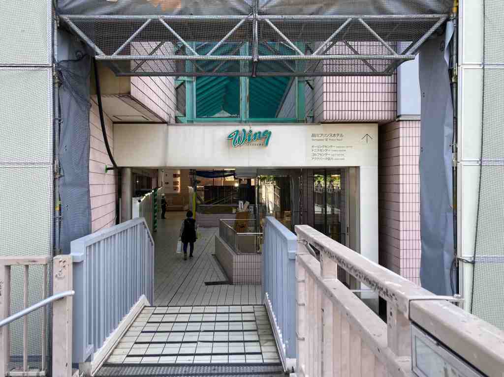 高輪口の歩道橋につながる2階入り口が、解体部分と残存部分の境界になります。