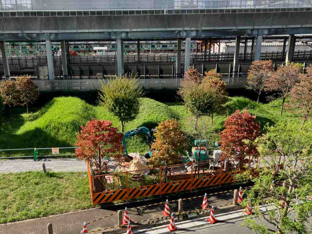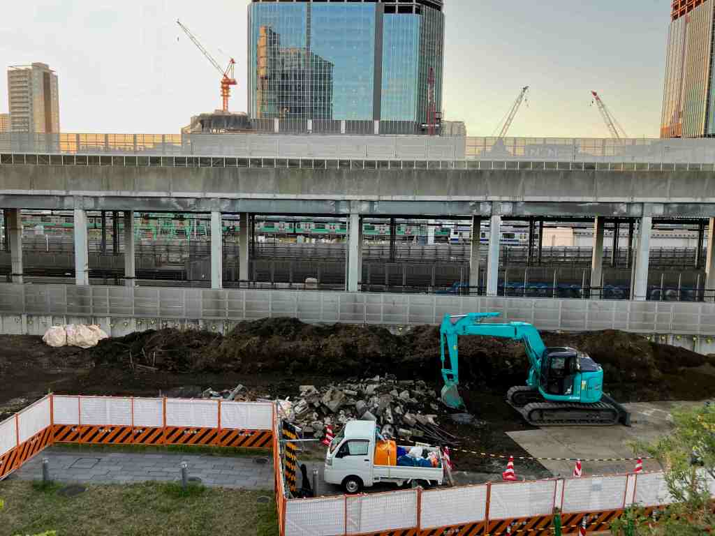 高輪ゲートウェイ駅東側連絡通路用の芝浦中央公園側の橋脚用工事が始まりました。公園との接続部分はエスカレーターが設置されると思われるので、それなりの規模の橋脚が必要なのではと思います。あと1年と4ヶ月後には完成です。