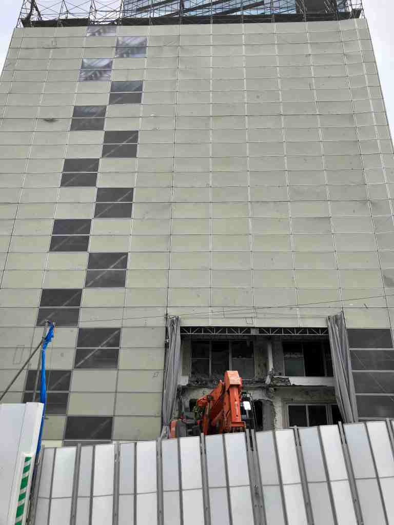すでに完成していて、建築囲越しにその姿を見ることができます。実際に見ると本当にかっこいいです。残ることになり本当に良かったです。