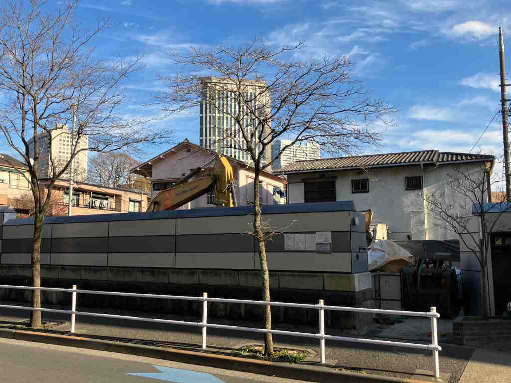 上の写真、北側の飛地部分の家屋が解体中となっています。貼り出されている解体工事のお知らせでは、年内には工事が終了する予定となっています。