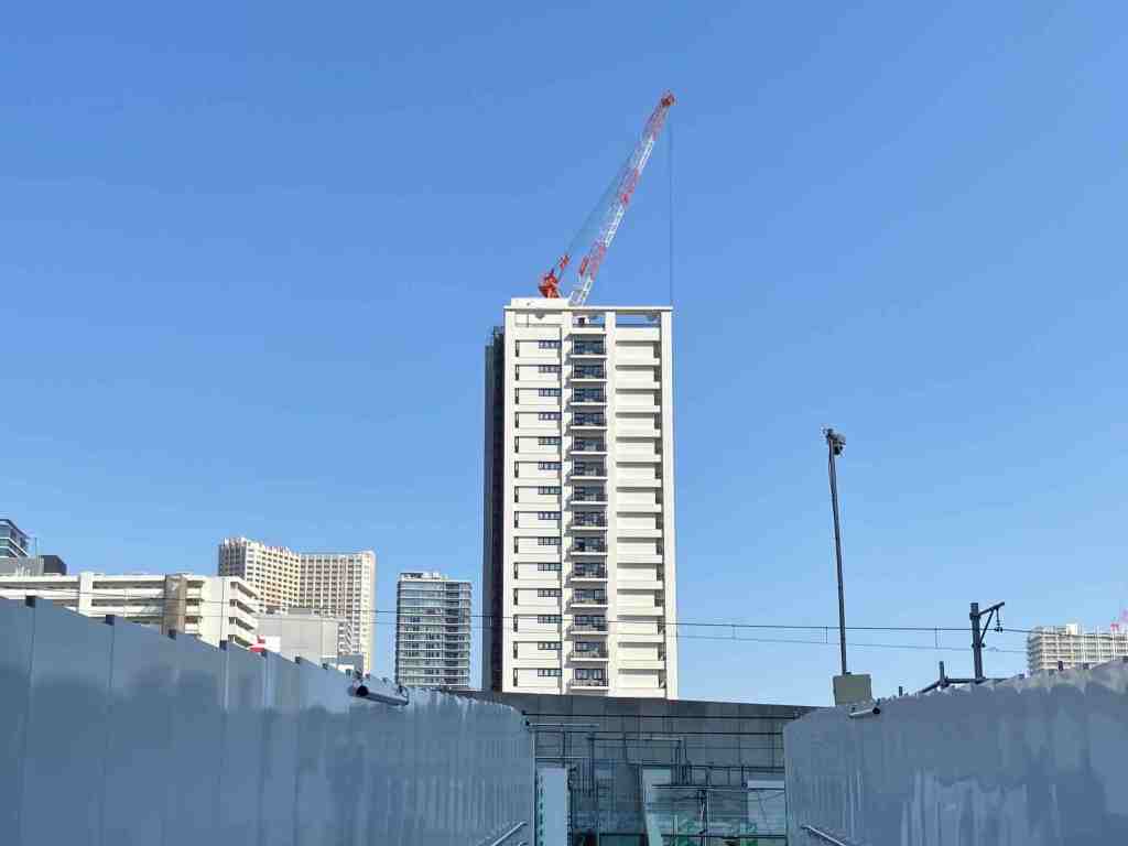 2025年10月末のカナルサイド高浜の竣工まで半年程度となり、建設工事用のシートが外されました。シティハイツ高浜(区営賃貸住宅)や、障害者グループホーム、介護施設等、いろいろな役割を担う建物です。お化けトンネル跡に建設中の第二東西連絡道路を経由して高輪ゲートウェイ駅にもアクセスしやすく、芝浦中央公園もすぐそばです。将来的には、すぐ向かいで、芝浦水再生センター再構築事業が進む予定なので、立地条件としては、かなり良い場所になると思います。
