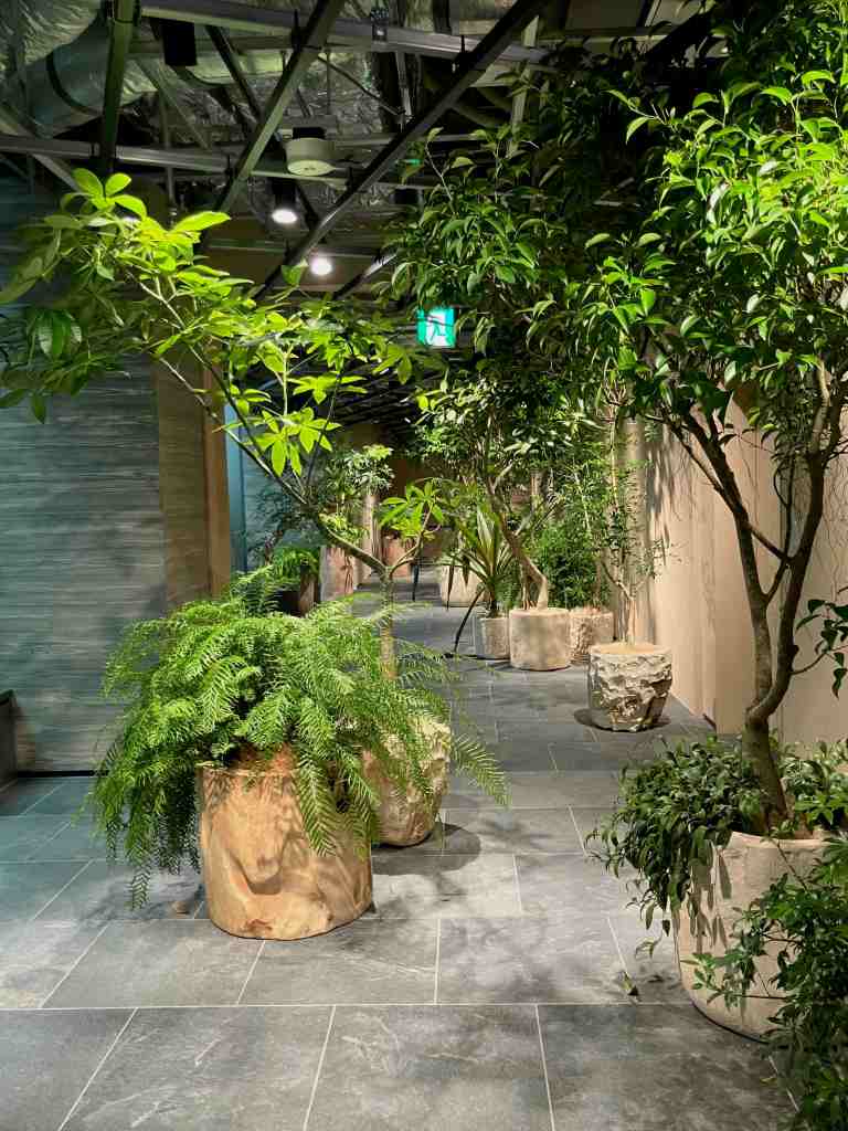 NEWoMan TAKANAWA Northの2階からエレベーターで28階まで上がると最初に名に入るのが、「深碧の間」と名付けられた壁一面の立体壁面緑化です。